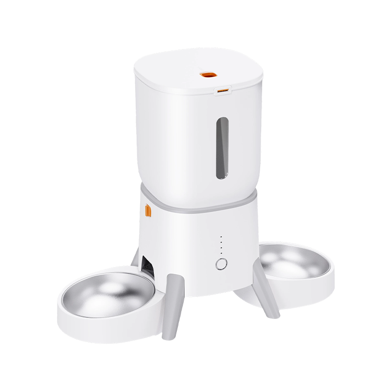 Das Design mit zwei Schüsseln fasst sowohl Futter als auch Wasser gleichzeitig und sorgt so für Ordnung. Eines der Hauptmerkmale dieses intelligenten Feeders ist seine umfassende Kompatibilität. Ganz gleich, ob Sie extrudiertes Hundefutter, gefriergetrocknetes Futter, Trockenfutter, gebackenes Hundefutter oder gemischtes Tierfutter verfüttern, dieser Futterautomat bietet problemlos Platz dafür.