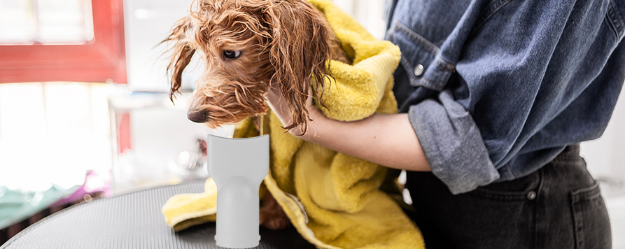 Es verfügt über einen großen und konzentrierten Luftaustrittsbereich, der zum Ausblasen von trockenem Wasser über den ganzen Körper dient. Es kann die Feuchtigkeit in dickem und dichtem Fell schnell trocknen und wird für den Einsatz bei heißem Wetter empfohlen.