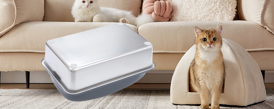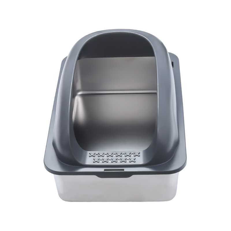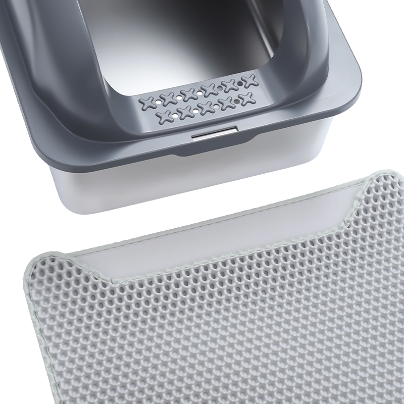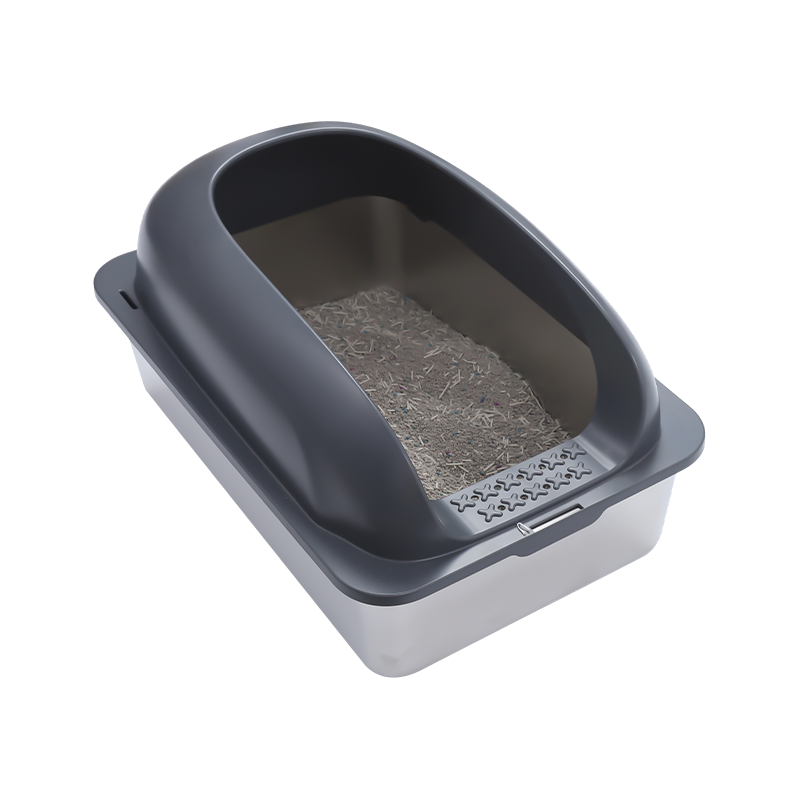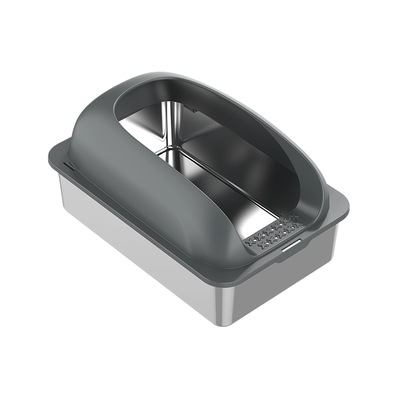 Um das Verschütten von Streu zu verhindern, ist die Katzentoilette mit einem hohen Ablenkblech ausgestattet. Selbst wenn sich die Katze während des Gebrauchs bewegt oder kratzt, wird die Streu effektiv in der Box zurückgehalten, wodurch verhindert wird, dass sie herausgetragen wird, und die Umgebung sauber bleibt. Dies ist besonders für aktive Katzen von Vorteil, da das hohe Leitblechdesign wirksam verhindert, dass verschüttetes Streu den Boden verschmutzt, und so den Reinigungsaufwand verringert.