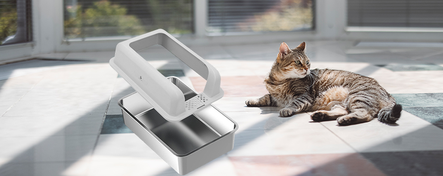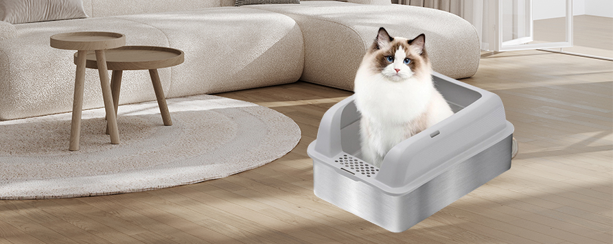 Die spritzwassergeschützte Katzentoilette aus Edelstahl kombiniert modernes Design mit High-Tech-Materialien und sorgt so für ein hygienischeres und komfortableres Benutzererlebnis. Es ermöglicht Haustierbesitzern einen einfacheren Reinigungsprozess und sorgt gleichzeitig für eine komfortable und sichere Umgebung für ihre Katzen. Diese aus hochwertigem Edelstahl gefertigte Katzentoilette ist leicht zu reinigen, langlebig und robust. Seine elektrolytisch behandelte Oberfläche verhindert Schmutz- und Streurückstände und erleichtert so die Reinigung.